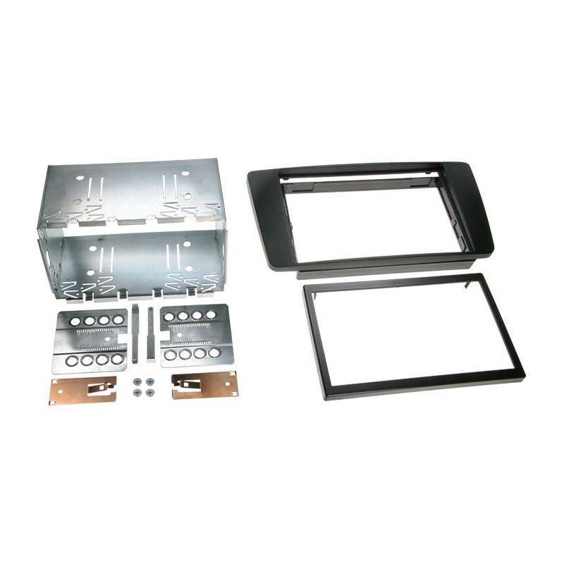 Sada obsahuje: Plastový adaptér (2 části), kovový rámeček, vymezovací rámeček 2DIN, instalační materiál
